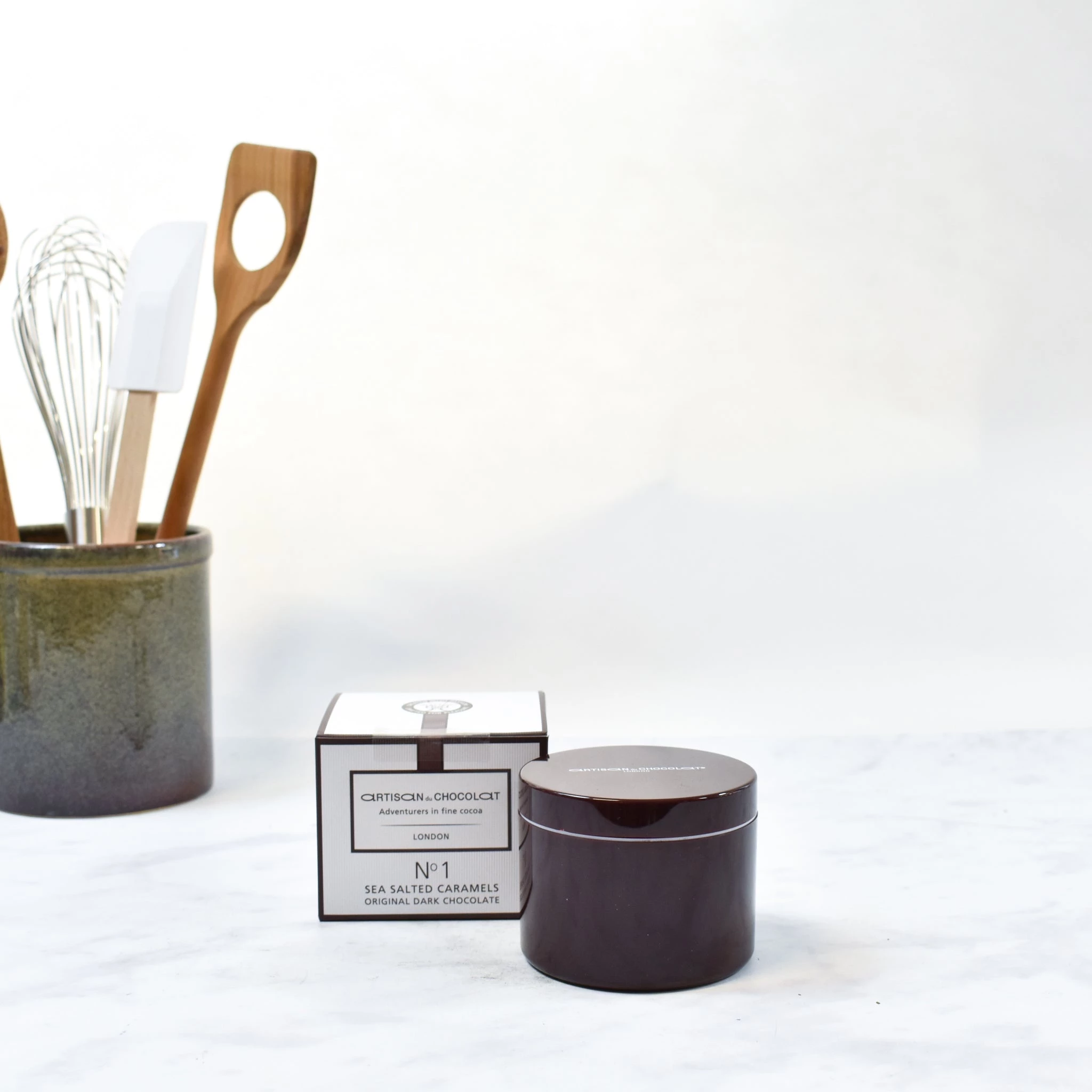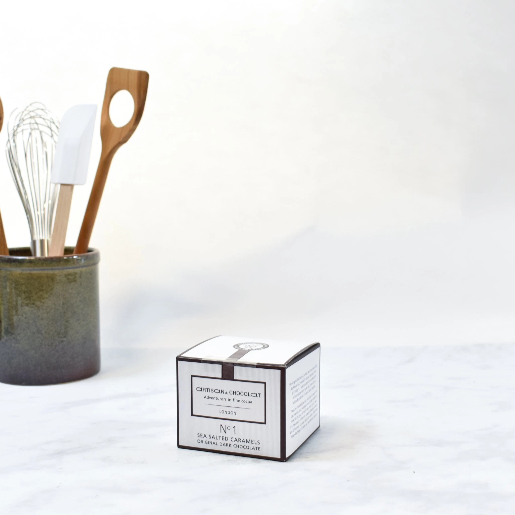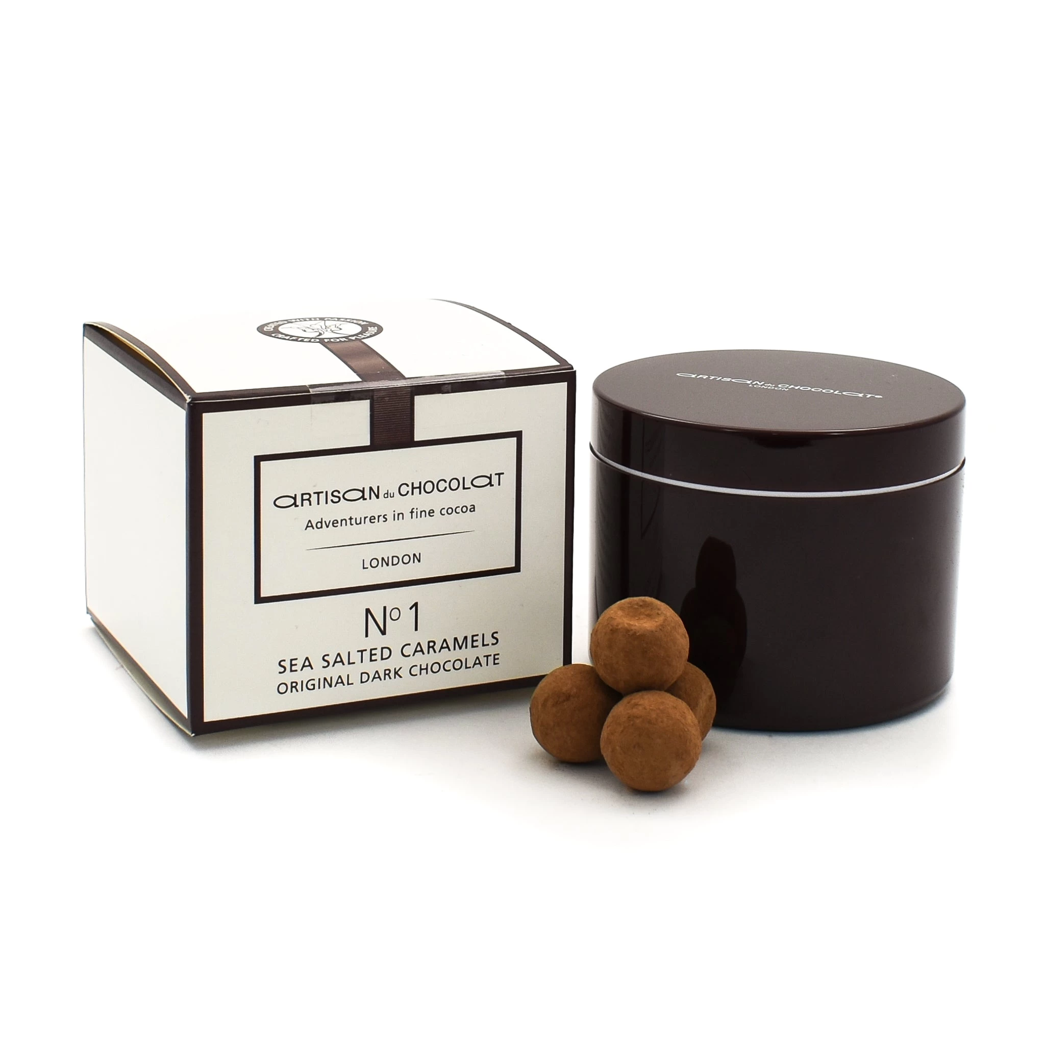 Artisan du Chocolat Original Sea Salted Caramels No. 1 ont été créés pour la première fois pour le menu Gordon Ramsay au Claridge’s en 2003. Bite à travers la poudre de cacao léger poussière, à travers la sphère parfaitement croustillante de chocolat noir intense, et le plaisir dans le liqLe caramel salé est recouvert de sel gris de l’île Noirmoutier, sur la côte ouest de la France. Le sel gris pur non traité, récolté à la main dans les marais argileux, contient une richesse de minéraux et d’éléments traces qui enriC’est l’équilibre des saveurs – sucrées, salines et minérales – et des textures – croquantes, liquides et veloutées – qui font de ces caramels salés la création la plus célèbre de Artisan du Chocolat et un tel best-seller.