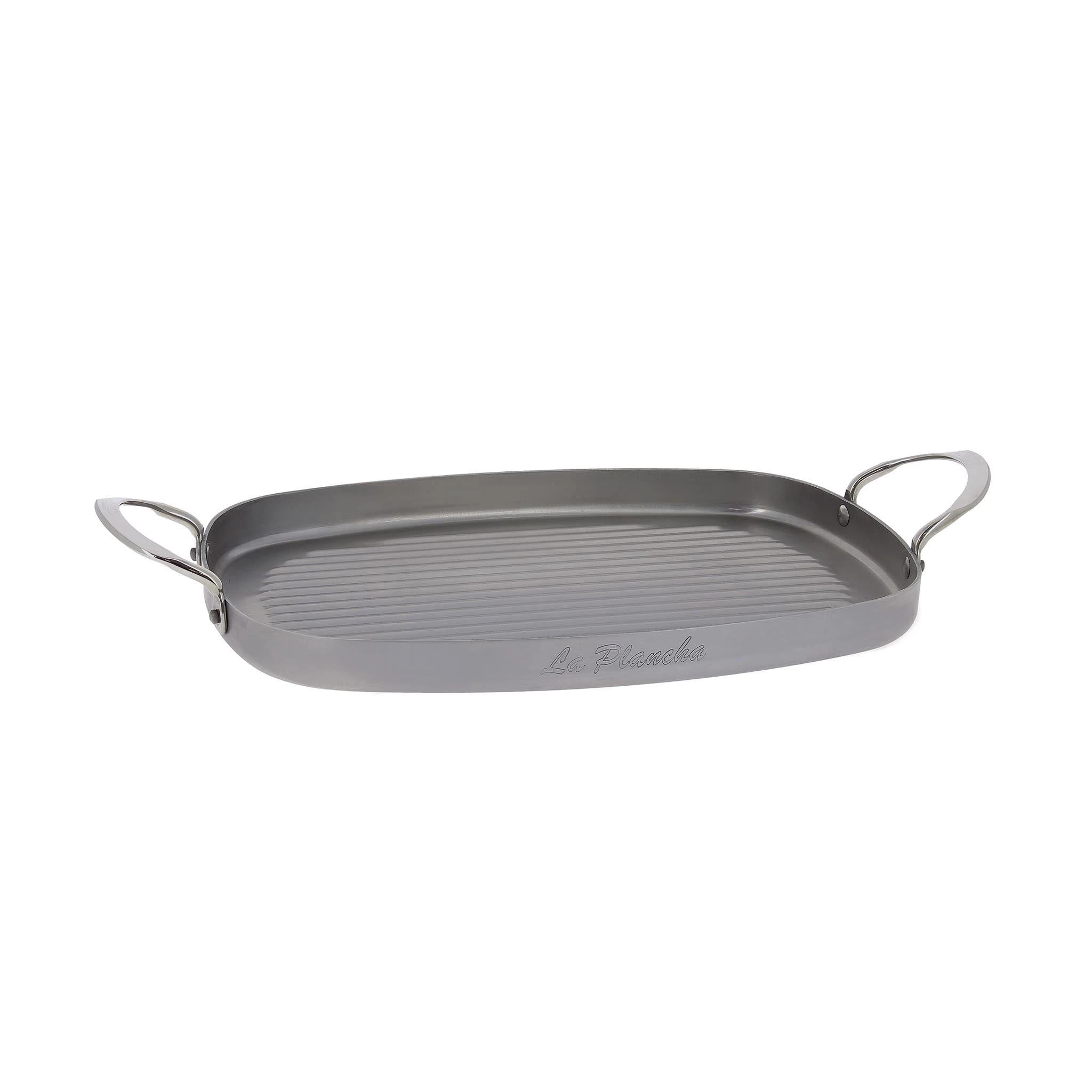 De Buyer Mineral B est idéal pour la cuisson en plein air. La grande poêle ovale en forme de grille est idéale pour la cuisson des pétoncles, des steaks, des crevettes et plus sur les charbons chauds.
