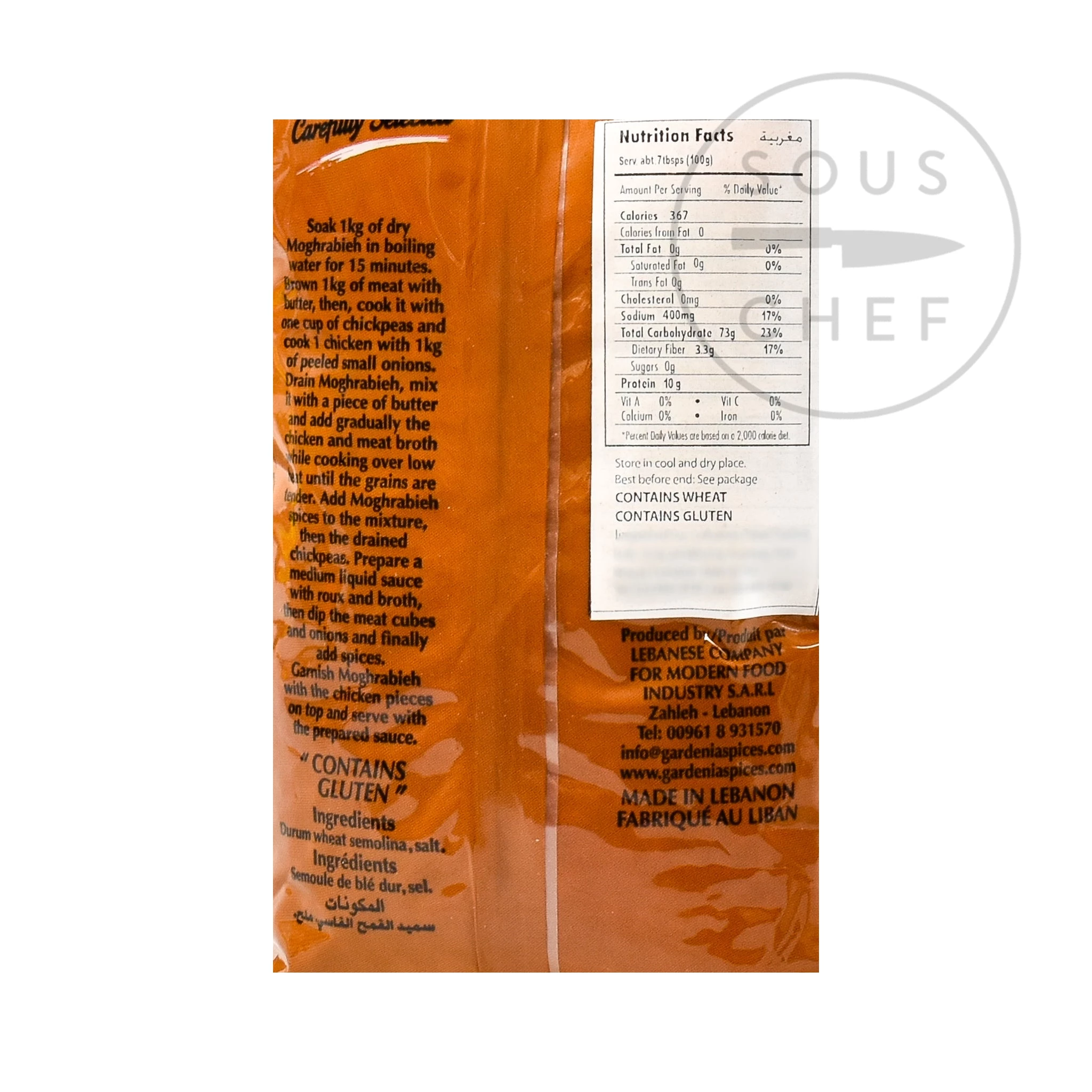 Moghrabieh or moghrabia giant couscous – also known as pearl couscous or Lebanese couscous – is a pea-sized grain used in Middle Eastern cooking. The large moghrabieh pearls add exciting texture to dishes, and are also a great twist on conventional couscous salads.