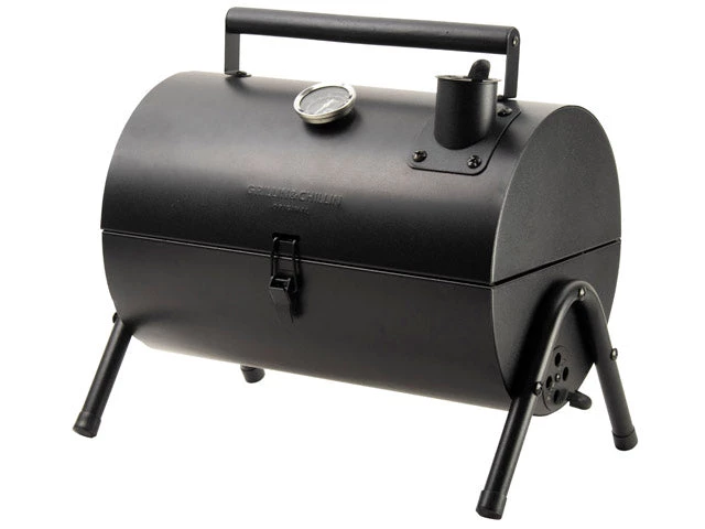 Le fumeur est une mini version du clForme de tambour d’huile. Remplissez le fond du fumeur de barbecue avec du charbon de bois et utilisez comme barbecue conventionnel. Ou utilisez les sections marquées pour brûler du charbon de bois et des copeaux de bois juste d’un côté – fermez le couvercle, ajustez les évents, et vous avez vous-même un fumeur!