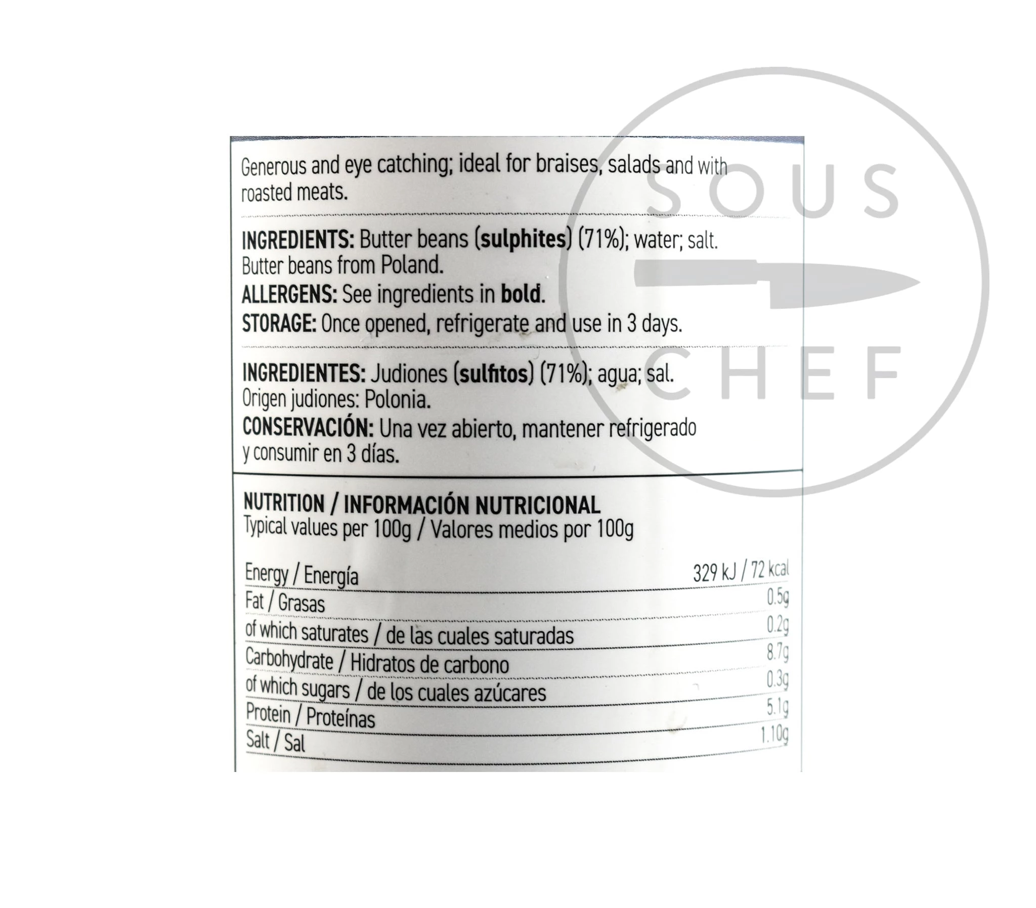 Ingrédients: Butter fèves (sulfites) (71%), eau, sel