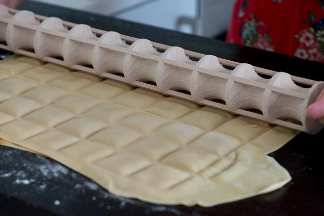 Utilisez ce rouleau pour façonner et sceller rapidement et efficacement les raviolis à partir de feuilles de pâtes fraîches. Modélisé sur l’outil de laminage original utilisé dans les cuisines liguriennes, le rouleau est fabriqué à partir de bois de hêtre qui le rend dur et durable.