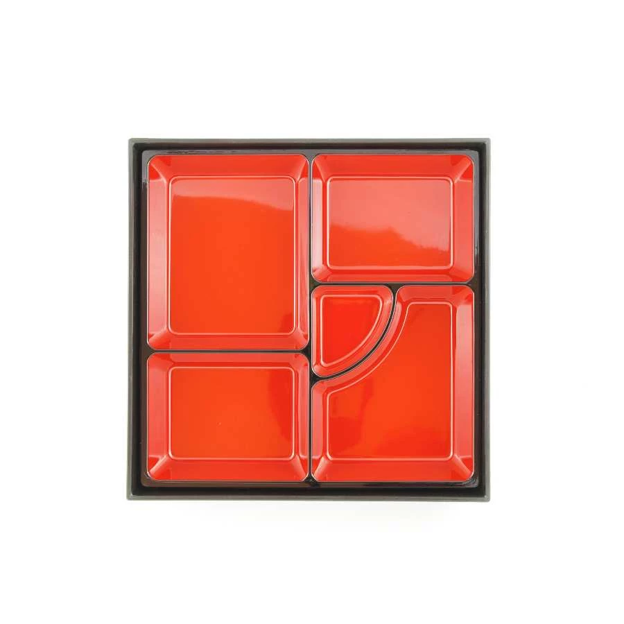 Boîte de bento japonaise authentique avec couvercle, comme utilisé dans les maisons et restaurants japonais pour présenter un repas complet composé d’une variété de plats. Un bento traditionnel contient soit du poisson ou de la viande, plus le riz et un ou plusieurs types de légumes marinés ou cuits. La section courbée peu profonde au centre de cette boîte est idéale pour tremper la sauce.