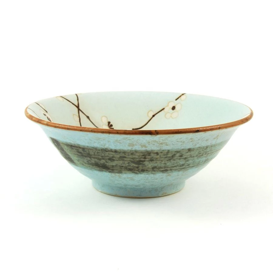 Bowles en grès texturés, avec un beau motif de fleur de sakura bleu canard-œuf japonais. De plus, dans le même modèle sont les bols de riz de Sakura Blossom et la plaque latérale de Sakura Blossom.
