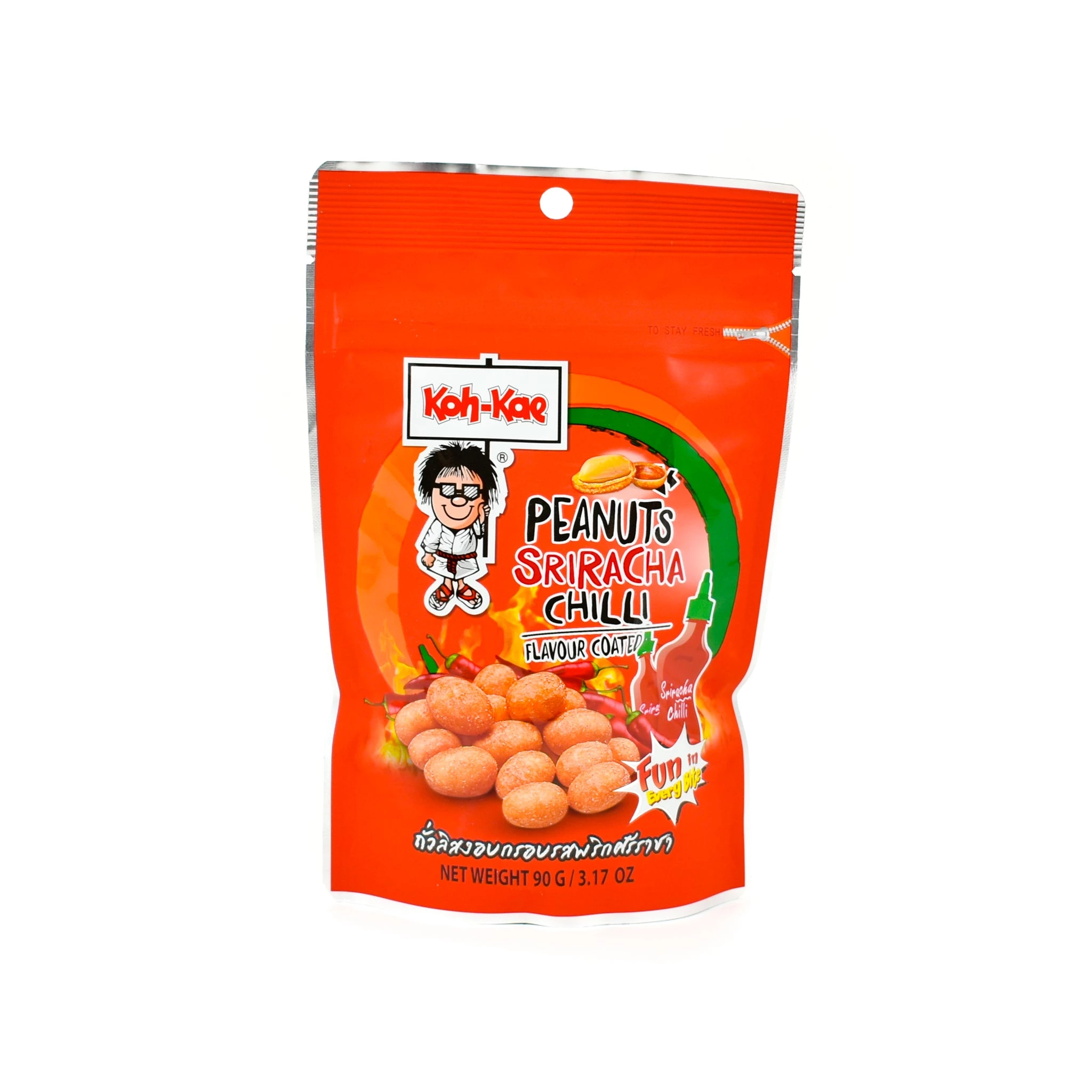 IngrĂ©dients: Peanuts (50%), blĂ© flour, farine de riz glutineux, farine de maĂŻs, phuile d’aumĂ´ne, aromatisation de sriracha [arĂ´me (soupe de soja en poudre, Huile de graines de moutarde), sucre, sel, msg: e621; guanylate de sodium: e627; disodium dansosinate: e631; dioxyde de silice: e551; acide citrique: e330; maltodextrine, amidon de tapioca, sauce de soja, huile vĂ©gĂ©tale (palm/coconut, tournesol, riz, huile de canola), dextrose, amidon de maĂŻs modifiĂ©, capsaicin], sucre, sel, acĂ©sulfame potassique: e950; bicarbonate de sodium: e500. Les allergènes sont Ă©numĂ©rĂ©s dans bold.