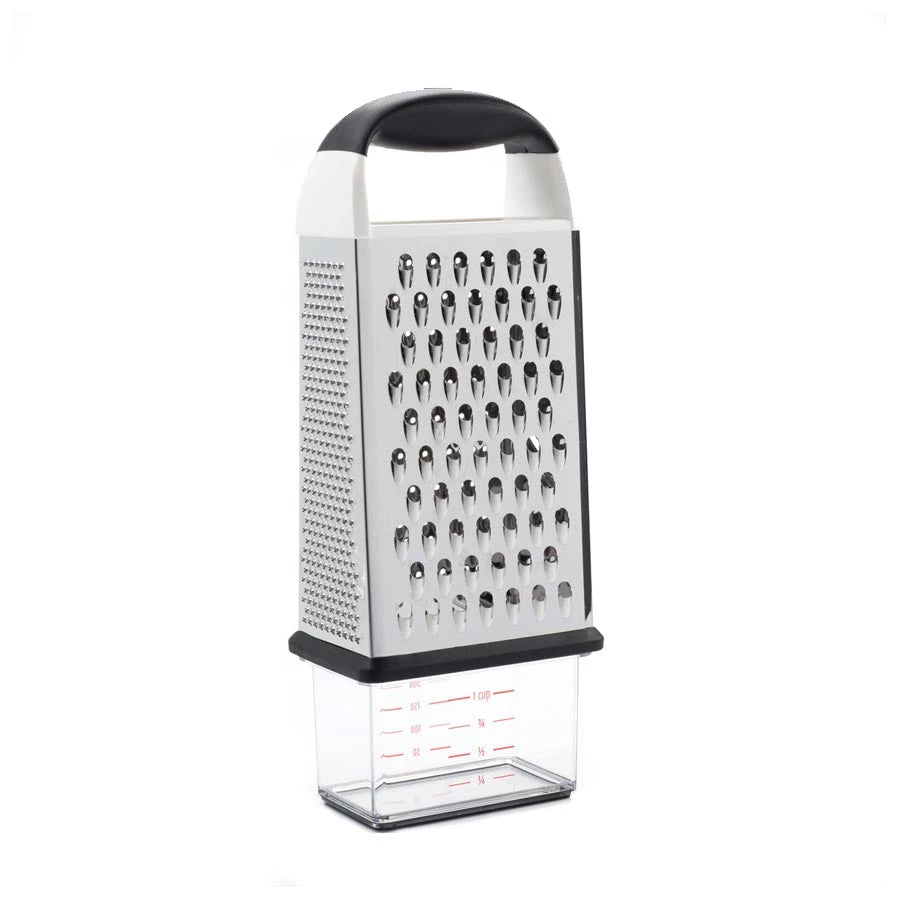 Le grater classique de la boîte obtient un relooking OXO Good Grips. Doté des 4 surfaces de grilles familières – grossières, fines, tranches et muscade – il a une base antidérapante robuste et une grande poignée facile à saisir. Il est également livré avec un récipient de stockage amovible.Il a été fondé sur la philosophie du Design Universel, ce qui signifie la conception de produits utilisables par le plus grand nombre possible de personnes.xample de la façon dont une philosophie de conception universelle bien exécutée crée des produits qui sont bénéfiques pour les utilisateurs finaux. OXO étudier les personnes de tous âges, capacités et de tous les horizons interagissant avec les produits et identifier les possibilités d’amélioration significative.Leur processus réfléchi, questionné, et l’attention sans relâche au détail découvre les meilleures solutions pour les tâches quotidiennes de la vie.