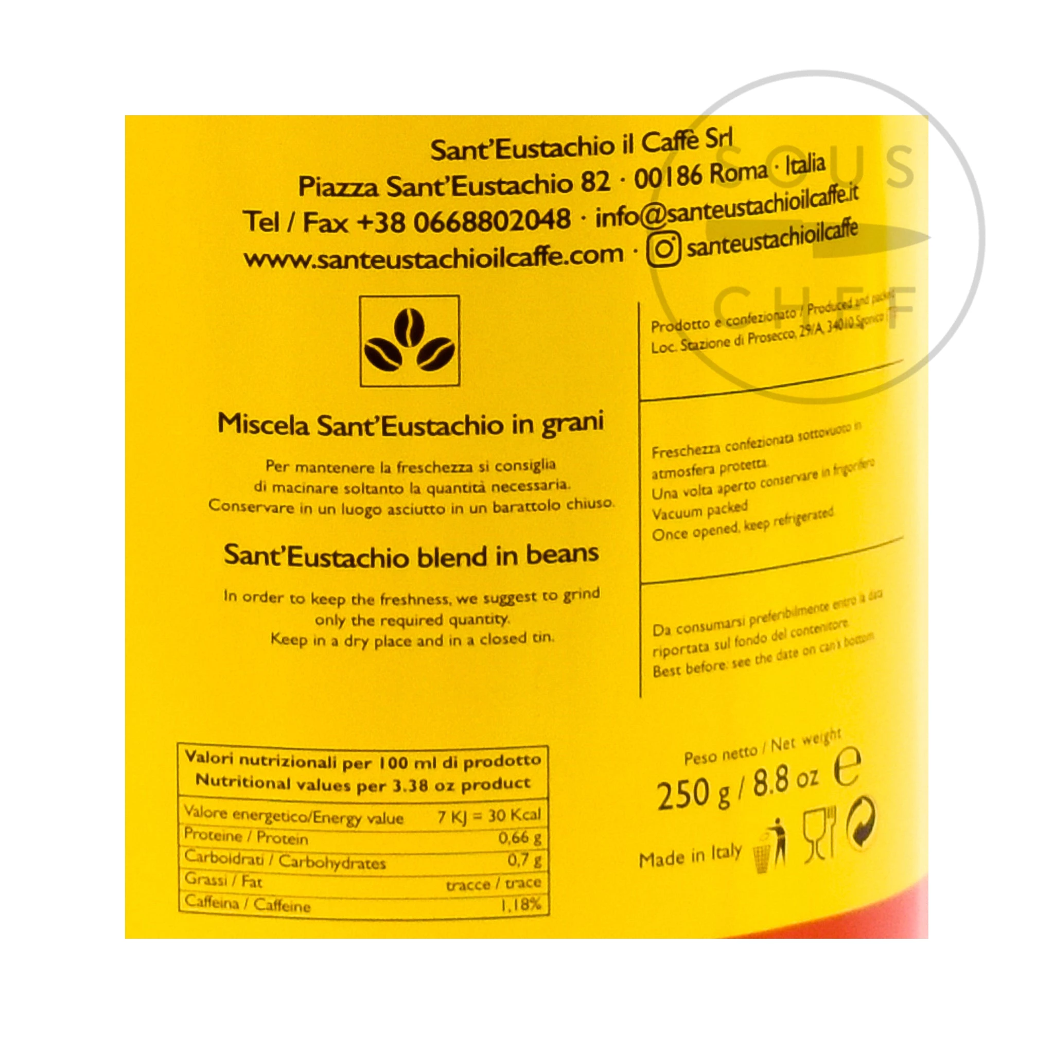 Sant’Eustachio coffee blend beans are a must for true coffee connoisseurs. This secret blend of 100% Arabica, wood roasted coffee beans is particularly desirable for making the perfect Italian espresso or cappuccino. For the best, freshest tasting coffee every time, only grind as many coffee beans as you need per serving.