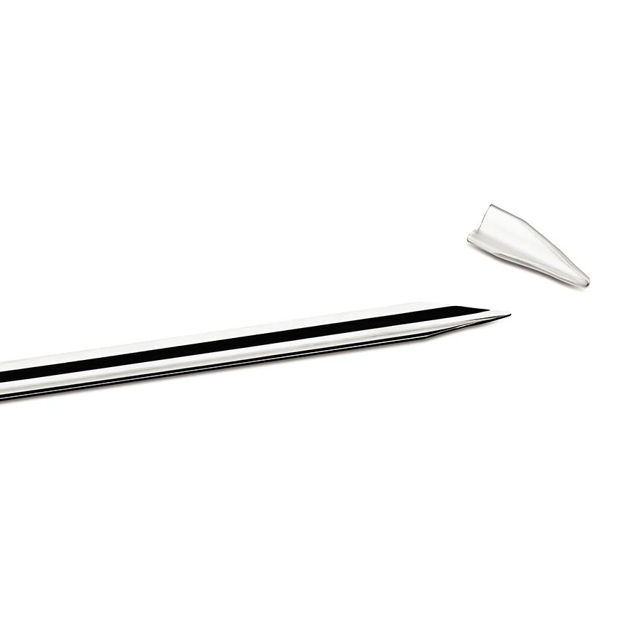 La brochette en acier inoxydable est exactement la même que vous avez trouvé dans un restaurant brésilien churrasqueria – un restaurant tout-vous-can-manger où les serveurs se déplacent autour du tLa brochette est livrée avec un garde en plastique pour protéger l’extrémité tranchante.
